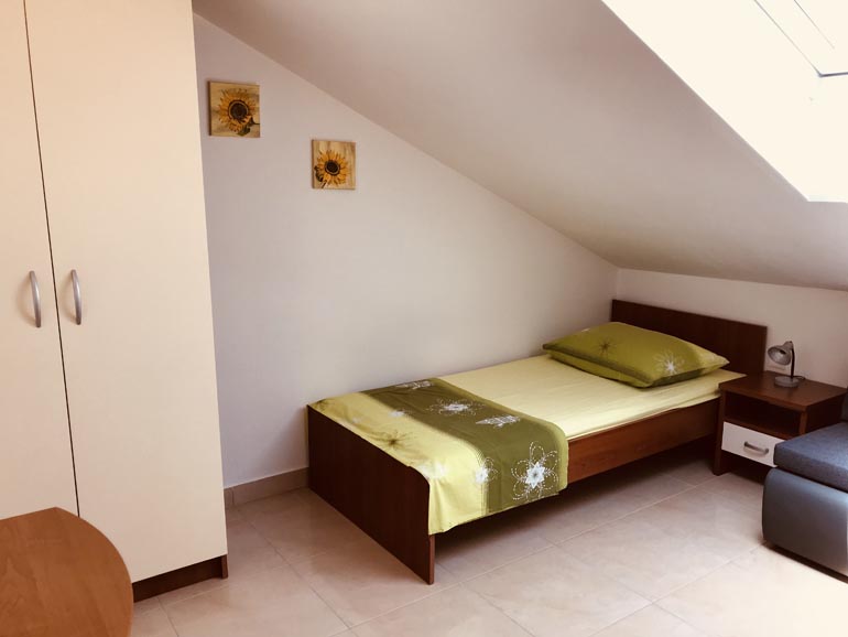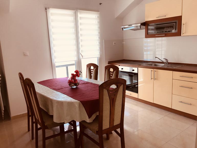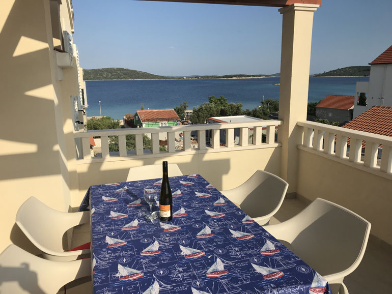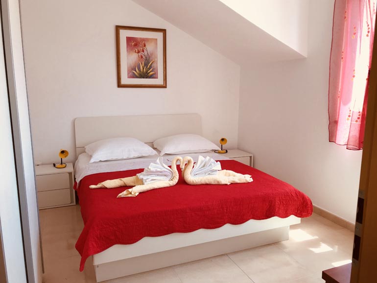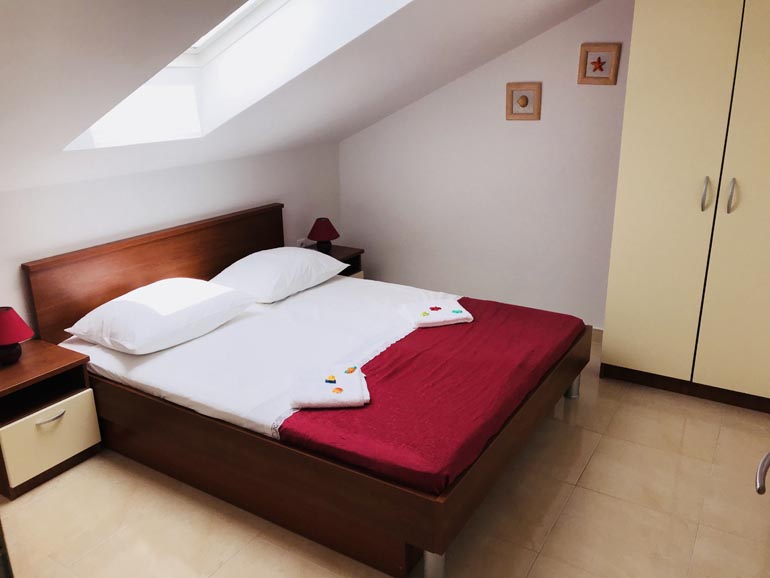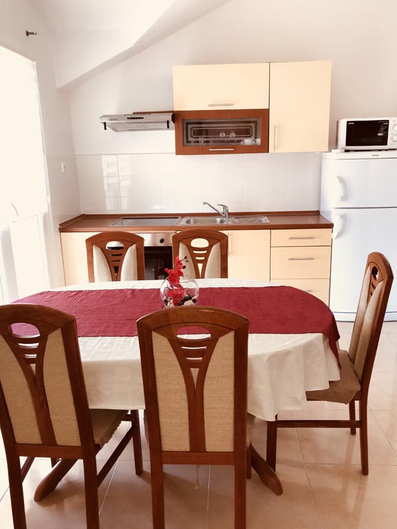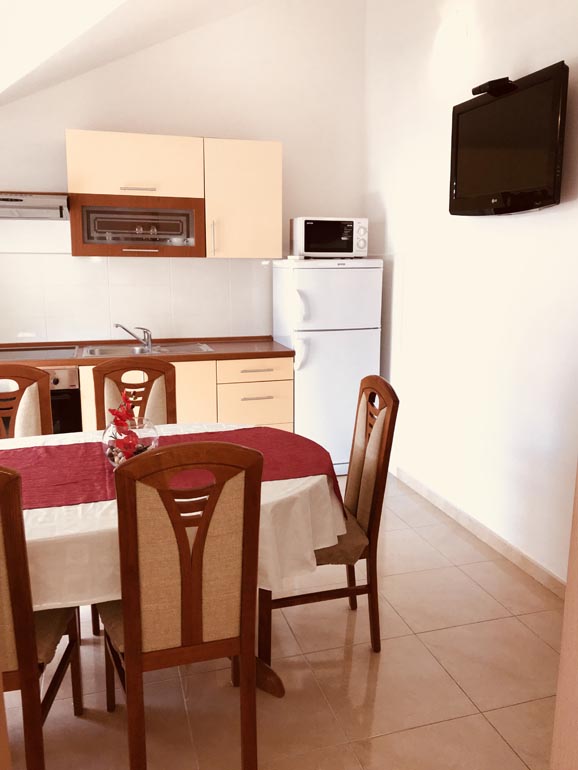 Our spacious apartment (60 m2) consists of two bedrooms, two bathroom, kitchen, dining/living room and a lagre terrace. The apartment is equipped with all the necessary equipment: Kitchen: stove, power and oven, fridge and all the utensils for eating and drinking. Living room is equipped with TV with satellite channels and the Internet. The apartment can optionally be equiped with child bed. The apartment is air-conditioned. The dining area opens onto a large terrace, ideal for dining and / or day care. Distance from apartment to the sea is only 30 meters and from the shops, just 10 meters away. The apartment has beautiful seawiev on both sides of Sevid.